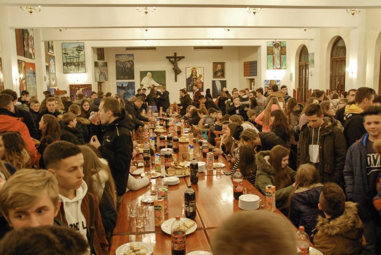 Kolejnym punktem czuwania było tradycyjne spotkanie przy drożdżówce, gdzie można było się posilić i swobodnie porozmawiać. Uczestnicy szczelnie wypełnili w tym dniu jadalnię pielgrzyma. Na lutowe czuwanie przybyła prawdopodobnie rekordowa ilość osób.
