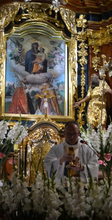 Rozpoczynając homilię ks. Piotr przywołał słowa św. Jana Pawła II wypowiedziane podczas pierwszej Jego pielgrzymki do Polski „ Musicie być mocni tą mocą, którą daje wiara”. Kontynuując podkreślił, że wszyscy potrzebujemy duchowego umocnienia. To u Chrystusa, zwłaszcza we współczesnym świecie musimy szukać umocnienia i siły. Imponują nam często ludzie, którym nikt niczego nie narzuca, nie stawia barier co wolno, a czego nie. Kaznodzieja podkreślił, że długo tęskniliśmy za wolnością. Ks. Piotr przypominając czas, gdy Polska wchodziła do Unii Europejskiej, zaakcentował, że sądzono, że będzie to szansa na wprowadzenie wartości chrześcijańskich do innych krajów, niestety odwróciły się one od chrześcijaństwa. Uchwala się prawo sprzeczne z chrześcijaństwem, promuje związki homoseksualne, w wielu krajach Europy Zachodniej zalegalizowana jest eutanazja. Dodał, że wartości płynące z Zachodu uderzają w rodzinę. Kaznodzieja zwrócił uwagę, że proces dechrystianizacji dotyczy przestrzeni publicznej. Przypomniał, że u progu pontyfikatu Papież Jan Paweł II wołał: Otwórzcie drzwi Chrystusowi. Podkreślił, że życie człowieka nie może przynosić dobrych owoców jeśli nie jest zakorzenione w Chrystusie. Kontynuując rozważanie ojciec rekolekcjonista opowiedział o cudzie Eucharystycznym w Sokółce.