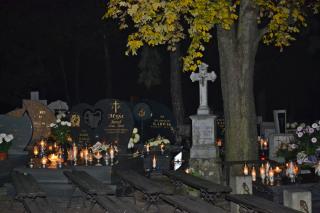Tak jak podczas każdej Eucharystii Pan zastawił dla nas stół, wielu skorzystało z zaproszenia i przyjęło Komunię Świętą zapewne ofiarując ją za swoich bliskich zmarłych. Po końcowym błogosławieństwie odbyła się procesja z modlitwami za zmarłych. Modlitwie przewodniczył ks. kan. Krzysztof Ordziniak. Przy pierwszej stacji modliliśmy się za zmarłych biskupów, kapłanów, diakonów, braci i siostry zakonne. W sposób szczególny polecaliśmy kapłanów, którzy posługiwali w naszej wspólnocie parafialnej. Druga stacja była miejscem modlitwy za zmarłych rodziców i przodków. Ważna jest pamięć o tych, którzy przekazali nam życie, wiarę, troszczyli się o przekaz tradycji. Przy trzeciej stacji polecaliśmy miłosierdziu Bożemu braci, siostry, dzieci, współmałżonków, krewnych, rodziców chrzestnych, wychowawców, dobrodziejów. To ważne w naszym życiu osoby, które zostały nam postawione na naszej drodze do nieba, ci od których doświadczyliśmy wiele dobra. Kolejna stacja stała się okazją do modlitwy za wszystkich zmarłych spoczywających na naszym cmentarzu, za poległych i ofiary wojen. Przy ostatniej stacji modlitwą objęliśmy wszystkich zmarłych, których wiarę znał jedynie Bóg i o których Kościół zawsze pamięta.