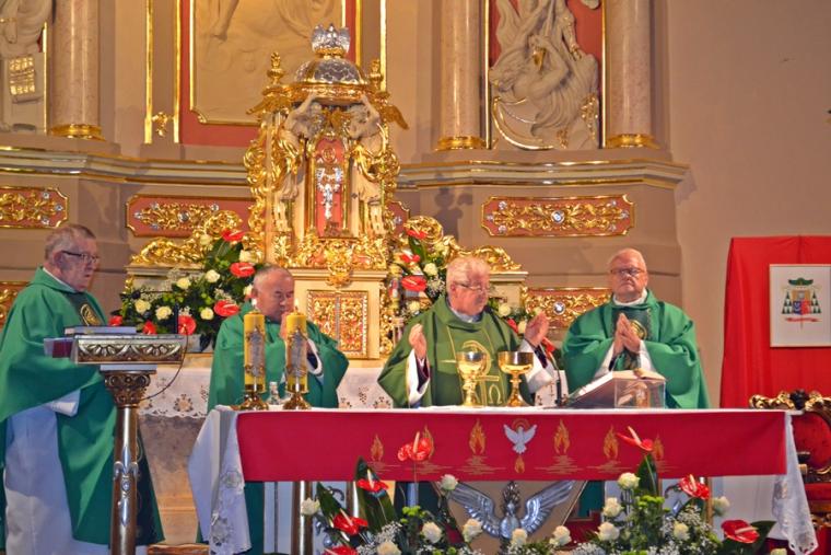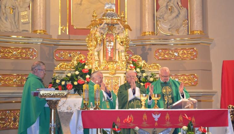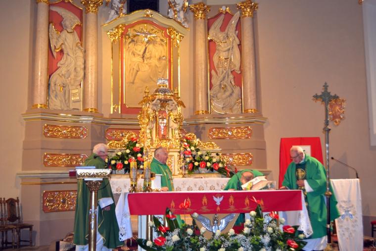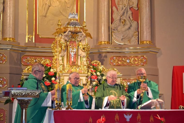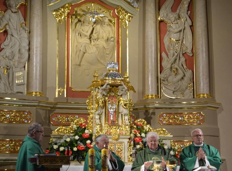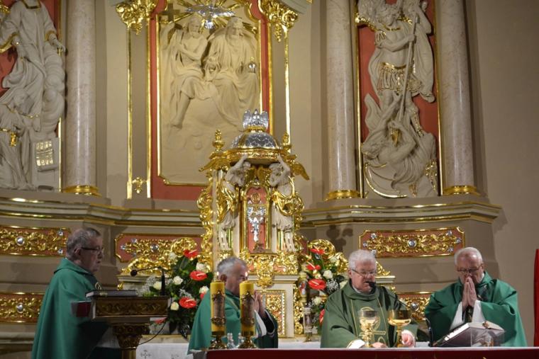 Podczas wieczornej Mszy św. przy ołtarzu stanęło czterech kapłanów: ks. kan. Grzegorz Klapa, ks. kan. Zbigniew Mielcarek, ks. kan. Jerzy Rasiak i o. Andrzej Grzesiak, nasz rekolekcjonista.