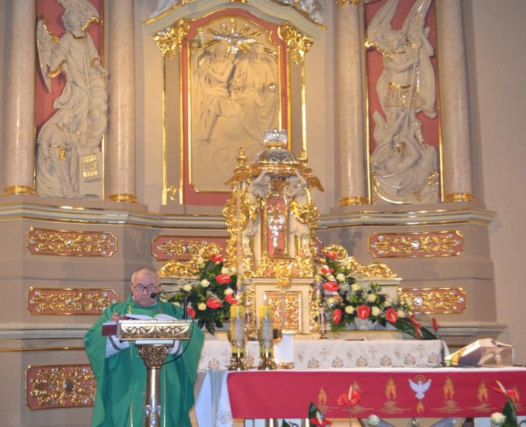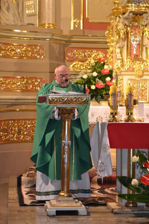 Rozpoczynając naukę o. Andrzej podkreślił, że naród czci stulecie odzyskania niepodległości, a nasza parafia obchodzi 100- poświecenia murowanego kościoła. Przypomniał, że wcześniej stała na tym miejscu świątynia drewniana. Kontynuując powiedział: „ Potrzebne są kościoły, bo potrzebny jest człowiekowi Bóg, bo światu potrzebni są ludzie o zdrowej duszy, mądrzy, o wielkim sercu”. Zaakcentował, że kościół w którym modlą się ludzie jest w pewnym stopniu wizerunkiem wiary parafii. Zwrócił uwagę na potrzebę szacunku dla kościoła, a następnie dodał: „ Jest ważne, aby pamiętać, że to miejsce jest Bogu poświęcone i Bóg w nim przebywa”. W dalszej części homilii kaznodzieja zaznaczył, że jest jeszcze inna świątynia o którą należy również dbać i o nią się troszczyć. Tą świątynia jesteśmy my sami. Zaznaczył, że przychodzimy do kościoła, by budować świątynię swego serca na fundamencie Chrystusa, napełniać się Duchem Świętym, by nasze życie wydawało dobre owoce. Podkreślił, że kościół parafialny jest miejscem, gdzie możemy uczyć się dobra, dostrzegania ludzi i ich potrzeb. Tu możemy się uczyć troski o piękno Domu Bożego. Zaznaczył, że aby tak było konieczna jest nasza obecność w kościele, nasza modlitwa, ale i nasze wsparcie materialne. Zwrócił uwagę na trzy znaczenia słowa „kościół”. Kościół to świątynie - budynki, świątynią jesteśmy my od momentu chrztu i Kościół to społeczność wierzących. Kontynuując o. Andrzej powiedział: „Trzeba dojść do tego, że sam powiem w swoim sercu: KOCHAM KOŚCIÓŁ, MÓJ KOŚCIÓŁ. A za co? Za to, że jest, że prowadzi mnie do Boga, że prowadzi drogą wiary, podpowiada jak żyć, prowadzi do świętości życia”.