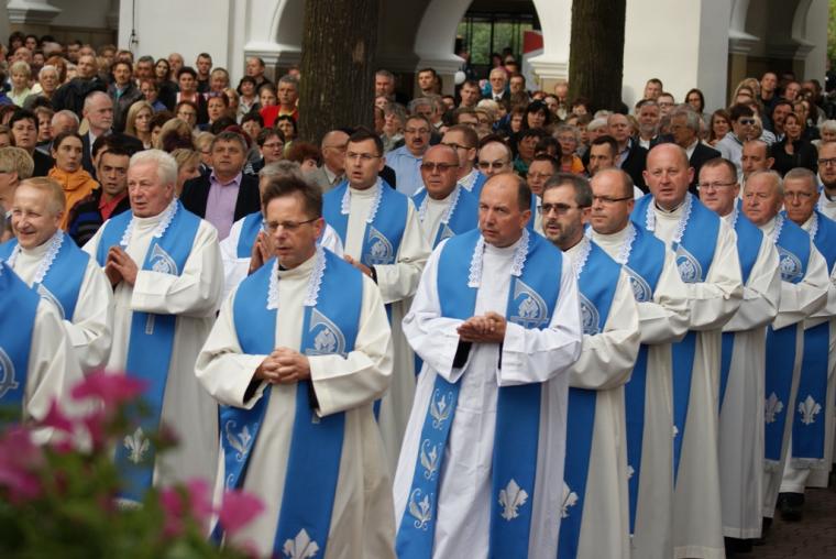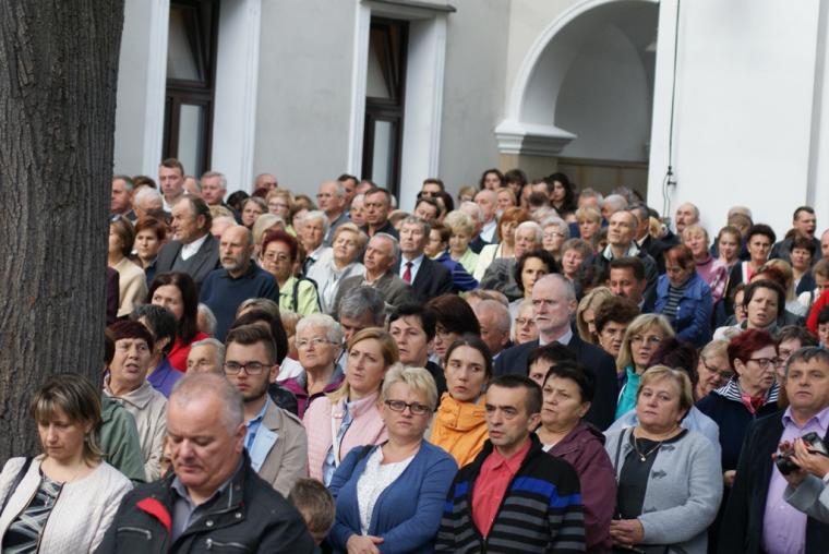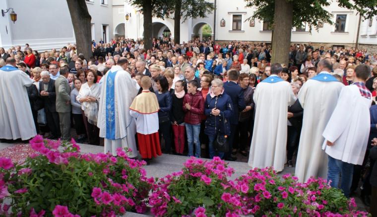 Msza św. o godzinie 15:00 zgromadziła licznych pielgrzymów, którymi były przede wszystkim osoby życia konsekrowanego z przeróżnych instytutów, zgromadzeń i zakonów. Dziękowały one Pani Tuchowskiej za dar powołania zakonnego. Mszy przewodniczył oraz kazanie wygłosił JE ks. bp Leszek Leszkiewicz – biskup pomocniczy diecezji tarnowskiej. Kaznodzieja rozpoczął swoją homilię od zadania zgromadzonym na placu osobom konsekrowanym pytań: Czy jesteście przekonani, że wasze powołanie i życie jest potrzebne Kościołowi? Kochacie swoich współbraci i współsiostry? Biskup przestrzegał zakonników, aby do ich wspólnot nie wkradł się jad szatana. Zachęcał, aby powrócili do pierwotnej miłości i zażyłości z Jezusem Chrystusem. Dlatego właśnie należy prosić Ducha Świętego o dar mądrości. Mądrości, która otworzy nasze oczy, serca i uszy na samego Chrystusa. Biskup Leszek w swojej homilii zwrócił osobom konsekrowanym uwagę na trzy istotne aspekty, które powinny być pielęgnowane w poszczególnych wspólnotach i zgromadzeniach zakonnych. Pierwszą podpowiedzią było ścisłe trzymanie się słowa Bożego, aby nasze działanie było mądre i wypływało z rozważnych decyzji. Druga podpowiedź dotyczyła prowadzenia głębokiego życia sakramentalnego, które nie może być jednocześnie oderwane od wspólnoty, w której się żyje. Trzecią podpowiedzią biskupa było odważne i świadome życie charyzmatem swojego zgromadzenia, które powinno przejawiać się rozważaniem i częstym rozmawianiem o konstytucjach i prawodawstwie poszczególnych zgromadzeń. Biskup Leszkiewicz na koniec swojego kazania przypomniał osobom konsekrowanym i świeckim zgromadzonym na popołudniowej Eucharystii, że zakonnicy mają przypominać światu o wieczności, o tym, co czeka nas ostatecznie w Królestwie Niebieskim.