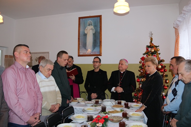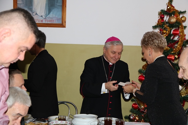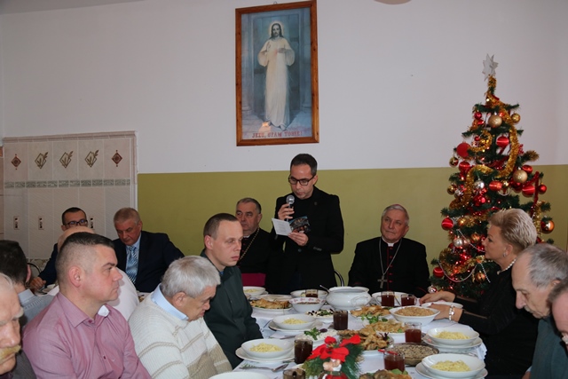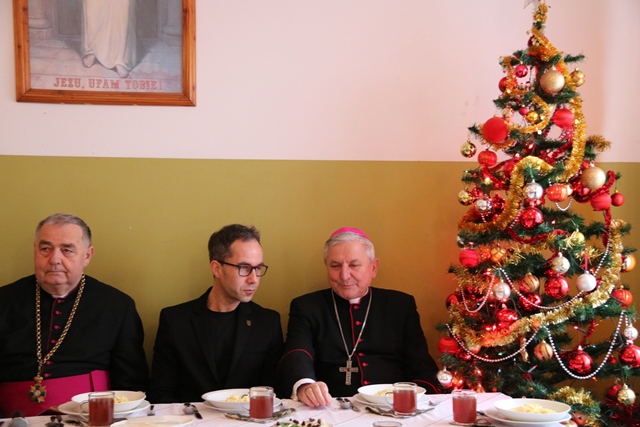 41 mężczyzn zasiadło dzisiaj przy wigilijnym stole w Schronisku św. Brata Alberta w Kaliszu. Z mieszkańcami opłatkiem przełamał się biskup kaliski Edward Janiak.