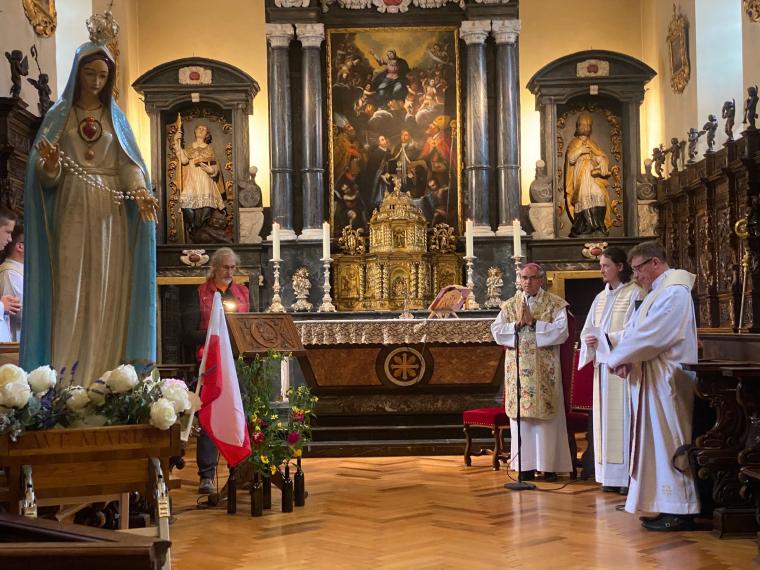 Na zakończenie Mszy Świętej w kaplicy, w której znajduje się obraz Matki Bożej Częstochowskiej, odśpiewano Apel Jasnogórski, a bp Robert zawierzył całą Polonię szwajcarską Jej opiece.