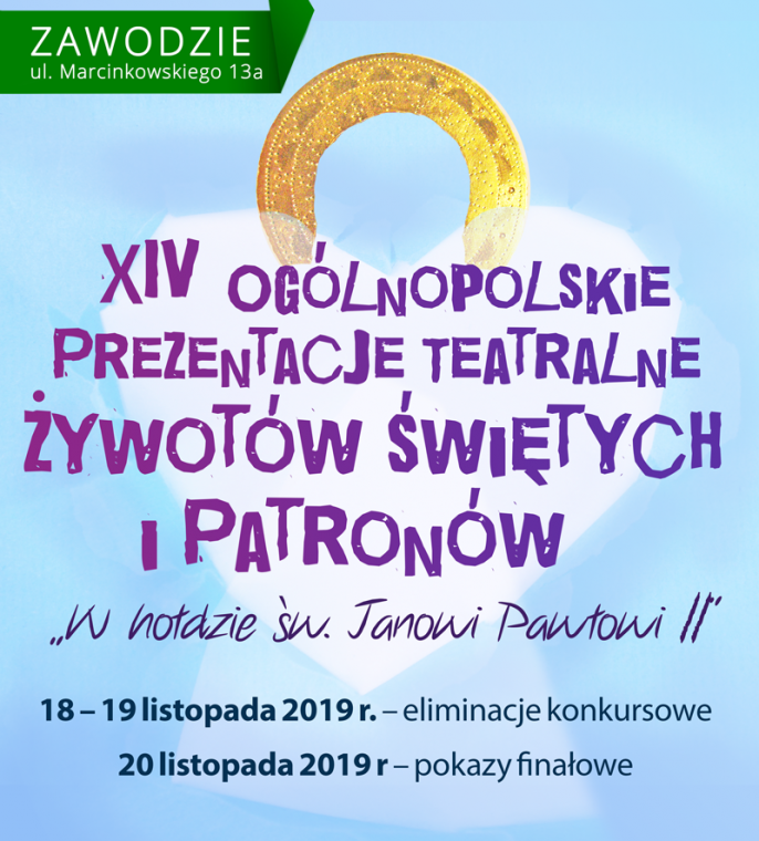 Parafia Opatrzności Bożej w Katowicach i MDK „Bogucice-Zawodzie” zapraszają zespoły teatralne do udziału w „XIV Ogólnopolskich Prezentacjach Teatralnych Żywotów Świętych i Patronów – W hołdzie św. Janowi Pawłowi II”, pragnących utrwalać pamięć o Świętych i wybitnych postaciach godnych miana Patronów. Poprzez zrealizowane spektakle, możemy stawiać ich jako wzór do naśladowania i drogowskaz pięknego życia! Nagrodzone zespoły otrzymają cenne nagrody rzeczowe. W Roku Powstań Śląskich, osobna nagroda zostanie przyznana dla spektaklu poświęconego bohaterom Powstań Śląskich i walce o polskość.