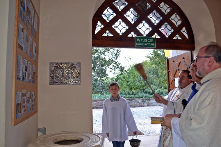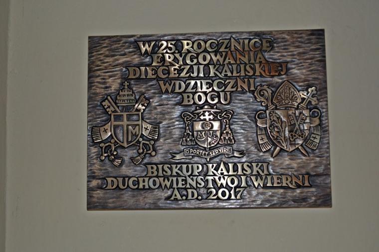 Ksiądz kan. Adam podczas tej mszy św. kończącej rekolekcje odpustowe poświęcił tablicę upamiętniającą Jubileusz 25-lecia erygowania Diecezji Kaliskiej.